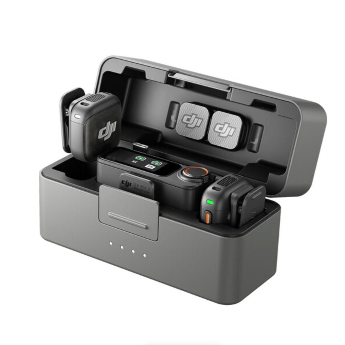 The DJI Mic 3 is a compact and advanced wireless microphone system designed for content creators, journalists, and filmmakers seeking high-quality audio capture. Weighing just 16 grams per transmitter, it offers a discreet and comfortable fit, featuring magnetic mounts and rotatable clips for versatile placement. The system supports up to four transmitters and eight receivers, making it ideal for multi-person and multi-camera setups. It boasts 32GB internal storage per transmitter, enabling dual-file 32-bit float internal recording for professional-grade audio quality. The adaptive gain control with automatic and dynamic modes, along with two-level noise canceling and three voice tone presets, ensures clear and balanced sound in various environments. With a 400-meter wireless range, dual-band anti-interference, and integrated timecode, the DJI Mic 3 delivers reliable and high-fidelity audio for diverse recording scenarios.